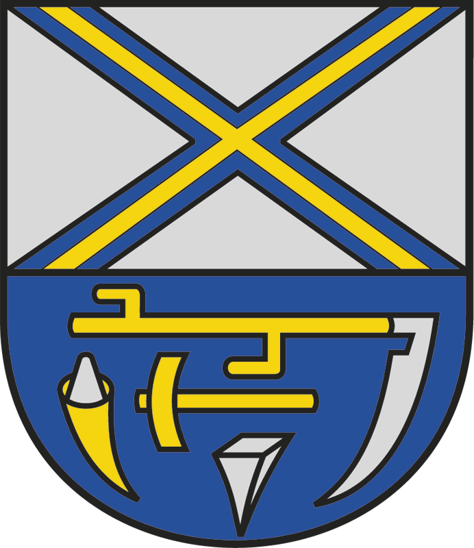 Má túto podobu: v hornej striebornej polovici deleného štítu zlatý modro lemovaný kríž sv. Ondreja, v dolnej modrej polovici pod striebornou položenou kosou so zlatým poriskom strieborné položené kladivo so zlatou rukoväťou nad striebornou nákovou, vpravo strieborná osla v zlatom rohu.