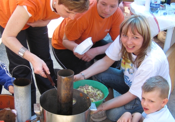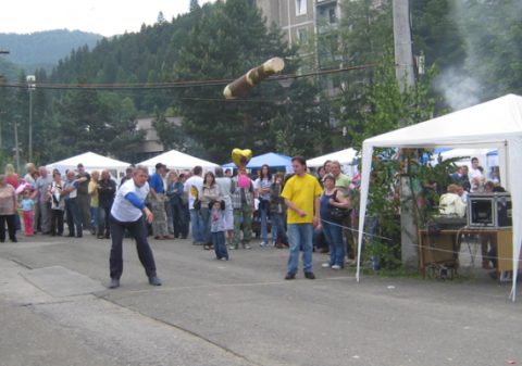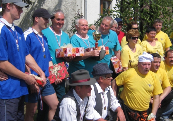 (drevo, metrovica cca 14 kg) o najdlhší hod. Spôsob hodu je ľubovolný.